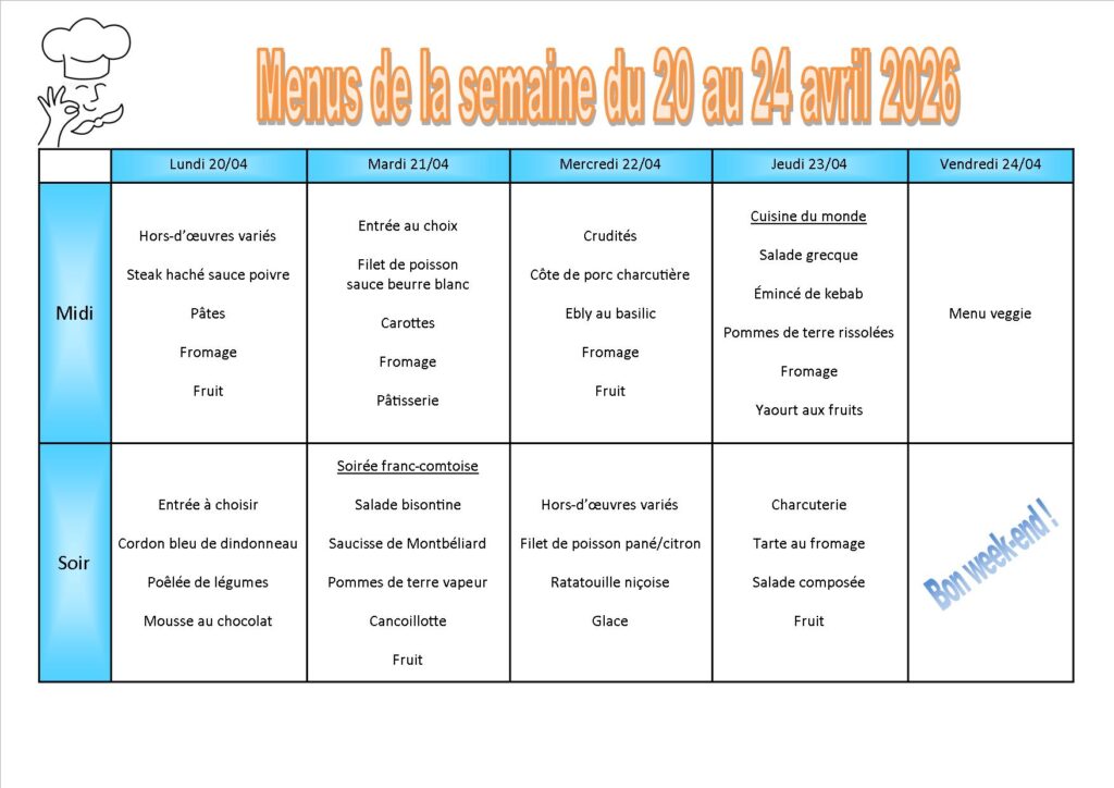 Menus du 20 au 24 avril 2026 3 avril 2026 | Menus Cantine ‹ Actualité Précédente Les ambassadeurs de l’établissement